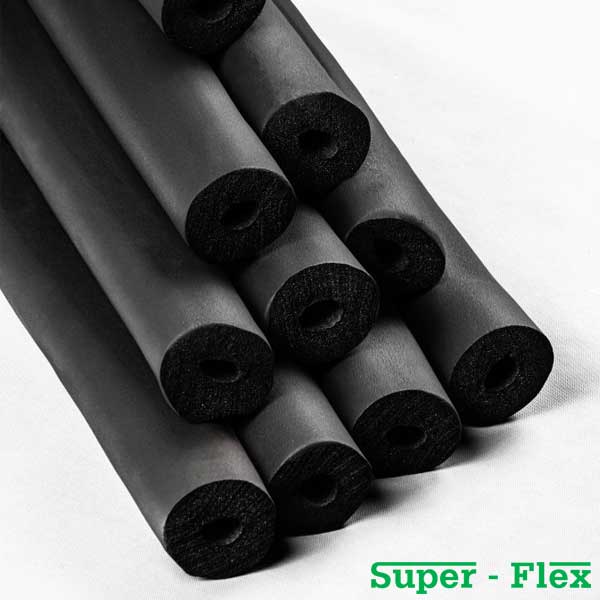 عایق الاستومری لوله ای سوپرفلکس به صورت شاخه 2 متری از سایز 6 میلیمتر تا 114 میلیمتر در ضخامت های 6 ، 9 ، 13 ، 19 ، 25 ، 32 میلیمتر تولید میشوند.
